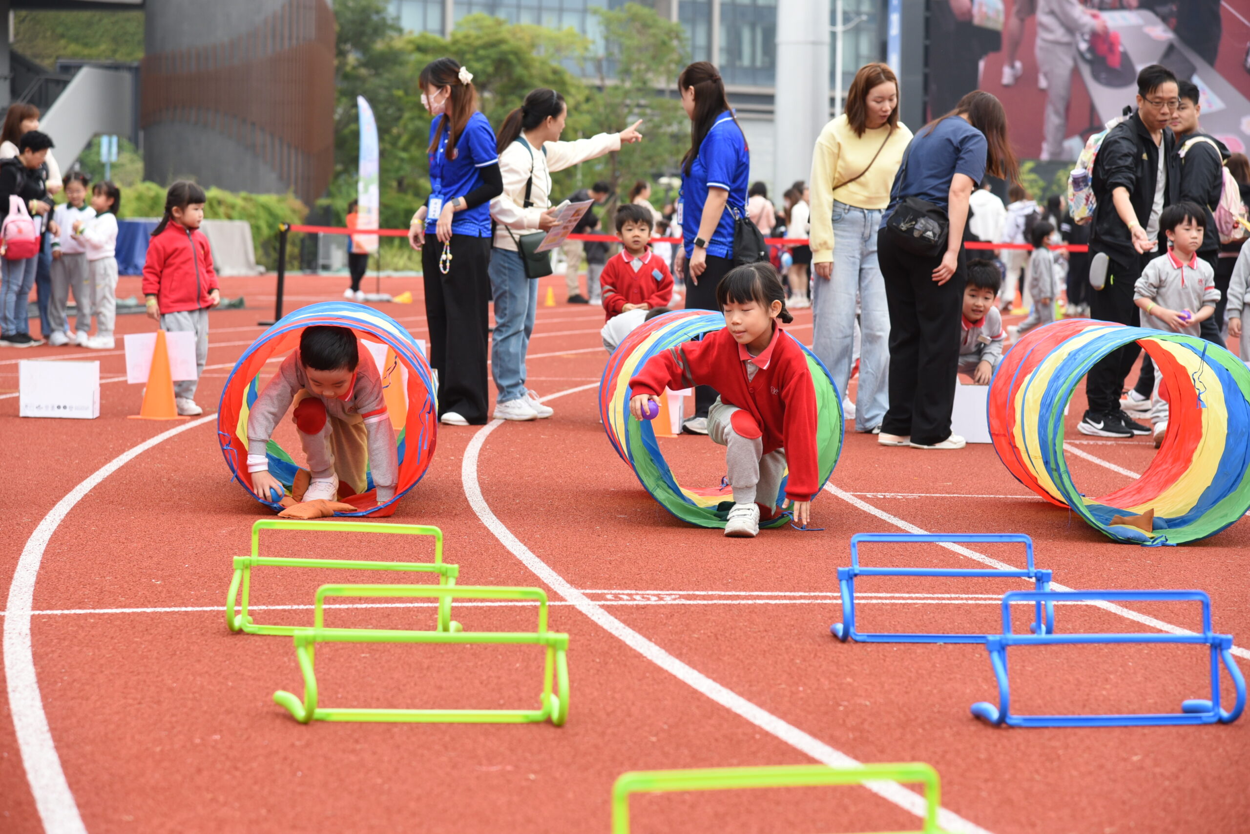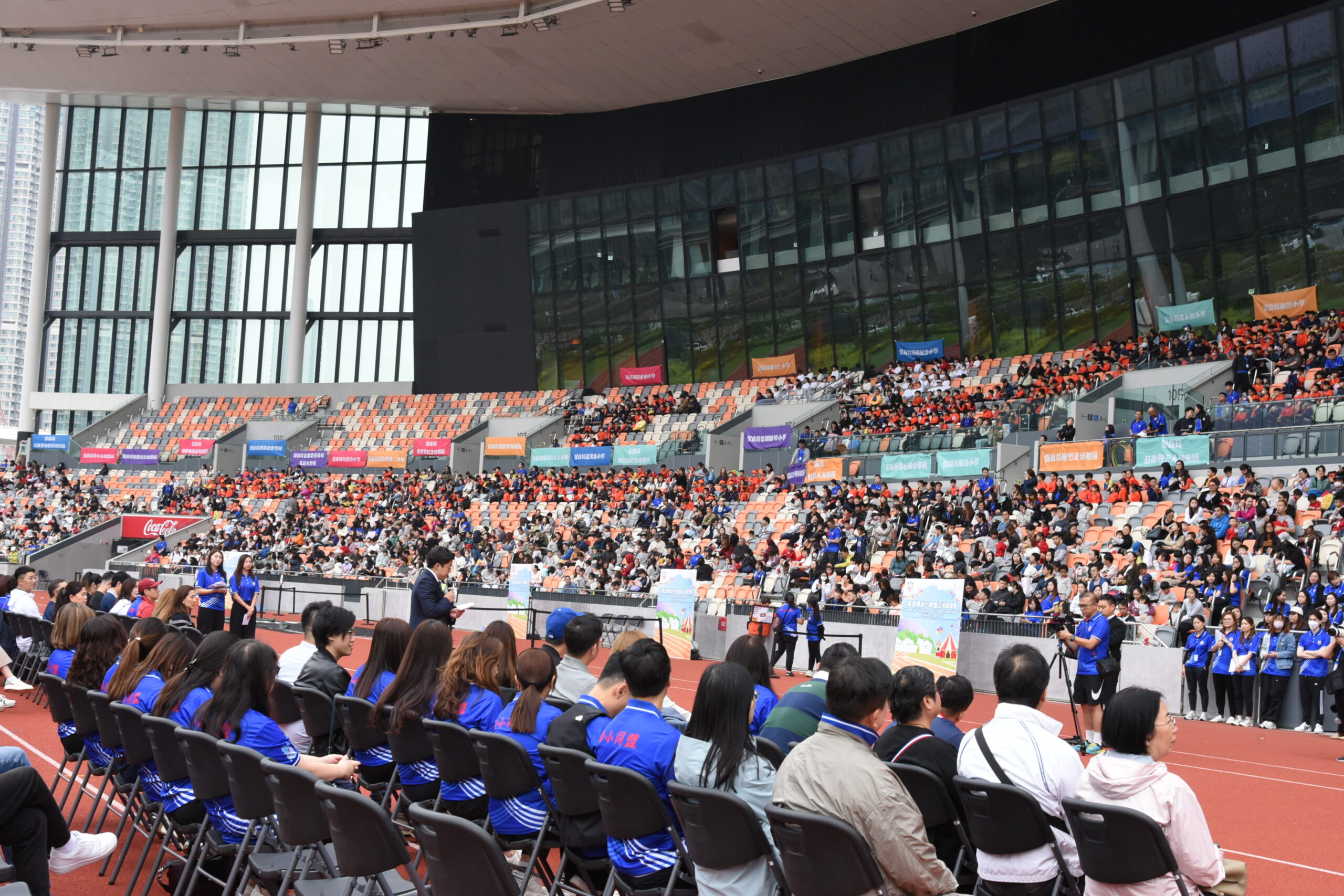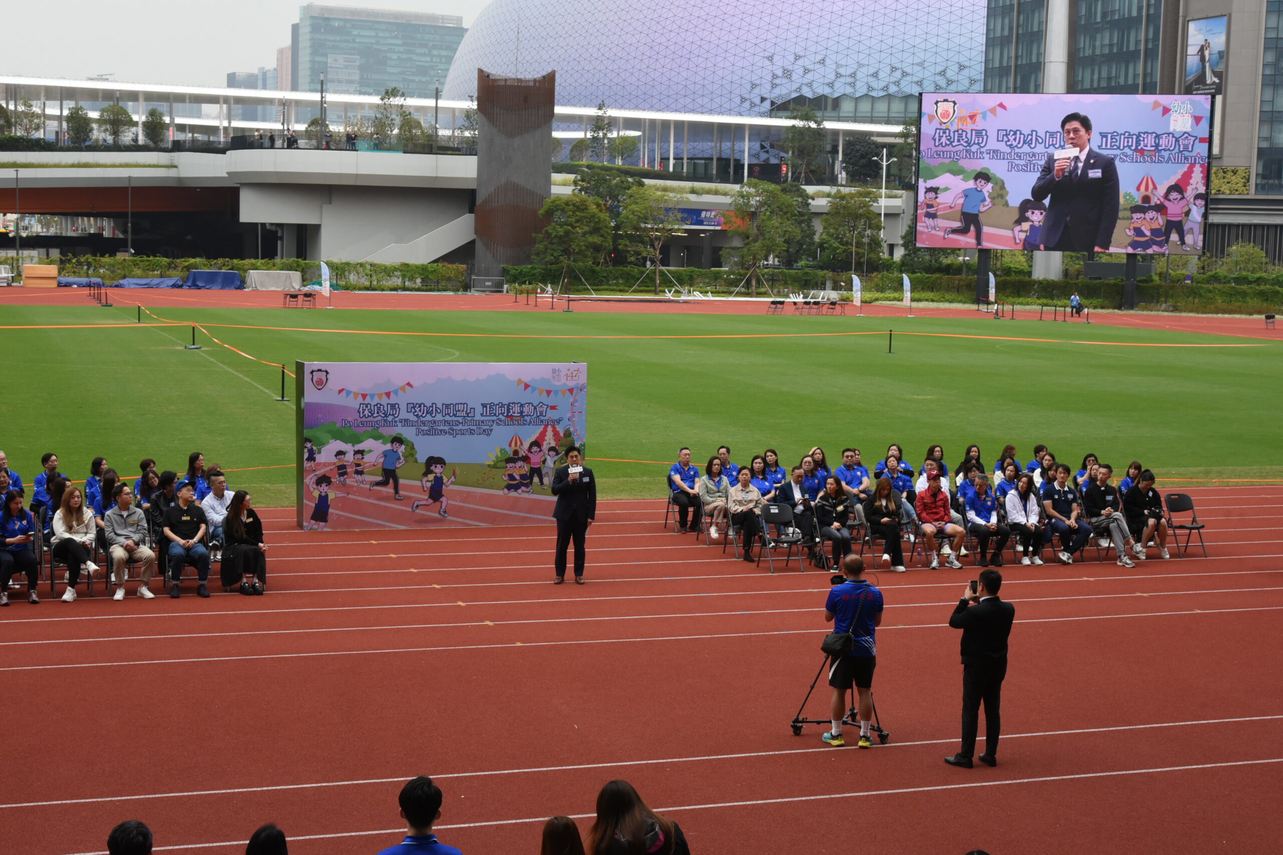 為推廣全民運動及正向生活態度,保良局假啟德青年運動場舉辦「正向運動會」,讓屬下50間幼稚園及小學,透過多元化的體育活動及趣味遊戲,促進學生及家長身心健康,讓屬校學生及家長及早享用全港設備最先進的運動場館之餘,更可讓參加者感受正向結合運動的趣味,讓大家明白如有暫時未能做到的,只要願意嘗試及努力,一定可以跑得更快,跳得更遠,傳遞積極向上的價值觀。   是次活動內容精彩豐富且多元化,促進親子合作及師生交流。除有具動感元素之正向運動攤位外,亦安排了不少家校合作之接力賽及障礙賽。當天在主禮嘉賓霍啟剛議員見證下,各參加者一同跳律動操,共創世界紀錄,氣氛熾熱。
