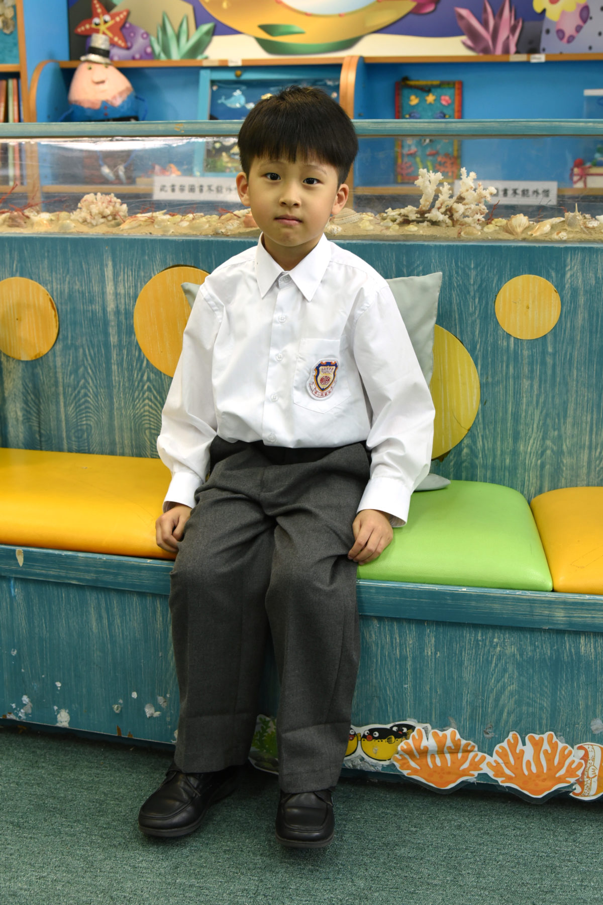 男生:白短袖恤衫(貼上“田家炳千禧小學”校章、不束於褲內)、灰藍色短西褲、純白短襪(不可穿船襪)、黑皮鞋、純白色內衣。