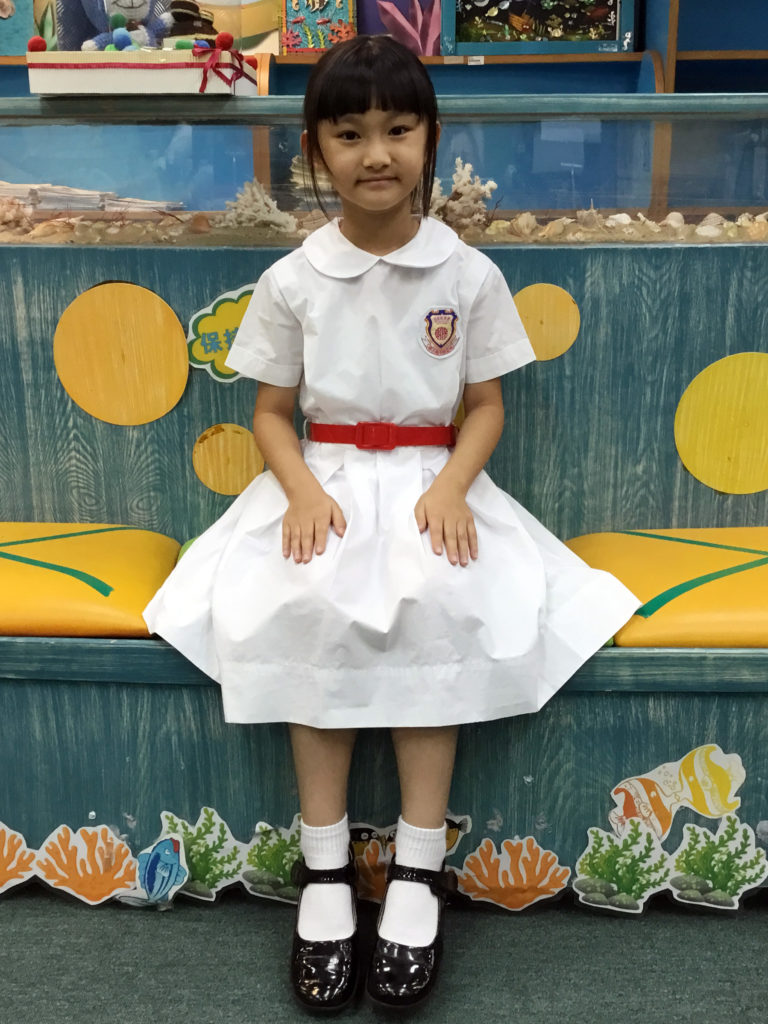女生:白短袖恤衫(貼上“田家炳千禧小學”校章、不束於褲內)、灰藍色短裙褲、純白到小腿短襪、黑皮鞋、純白色內衣。