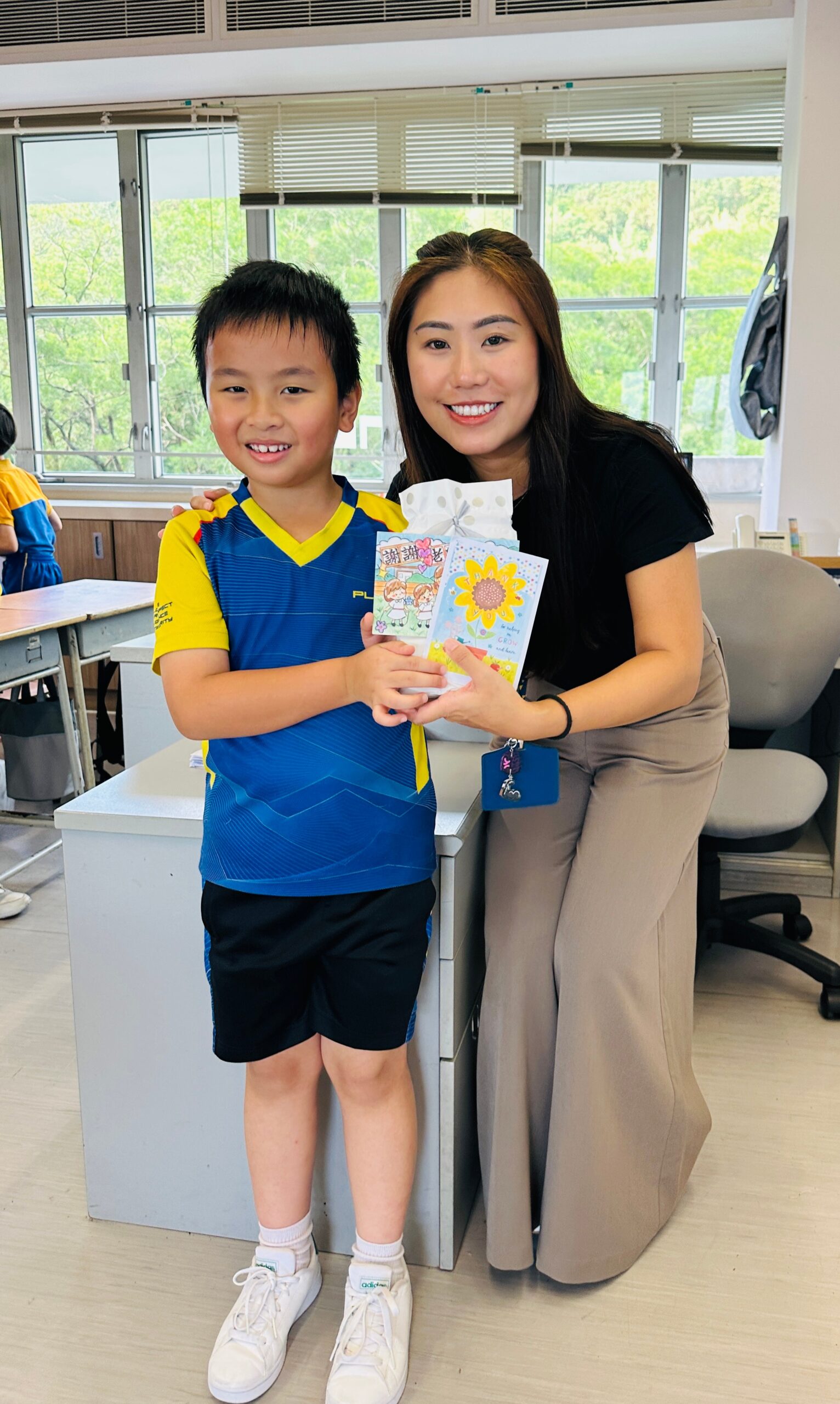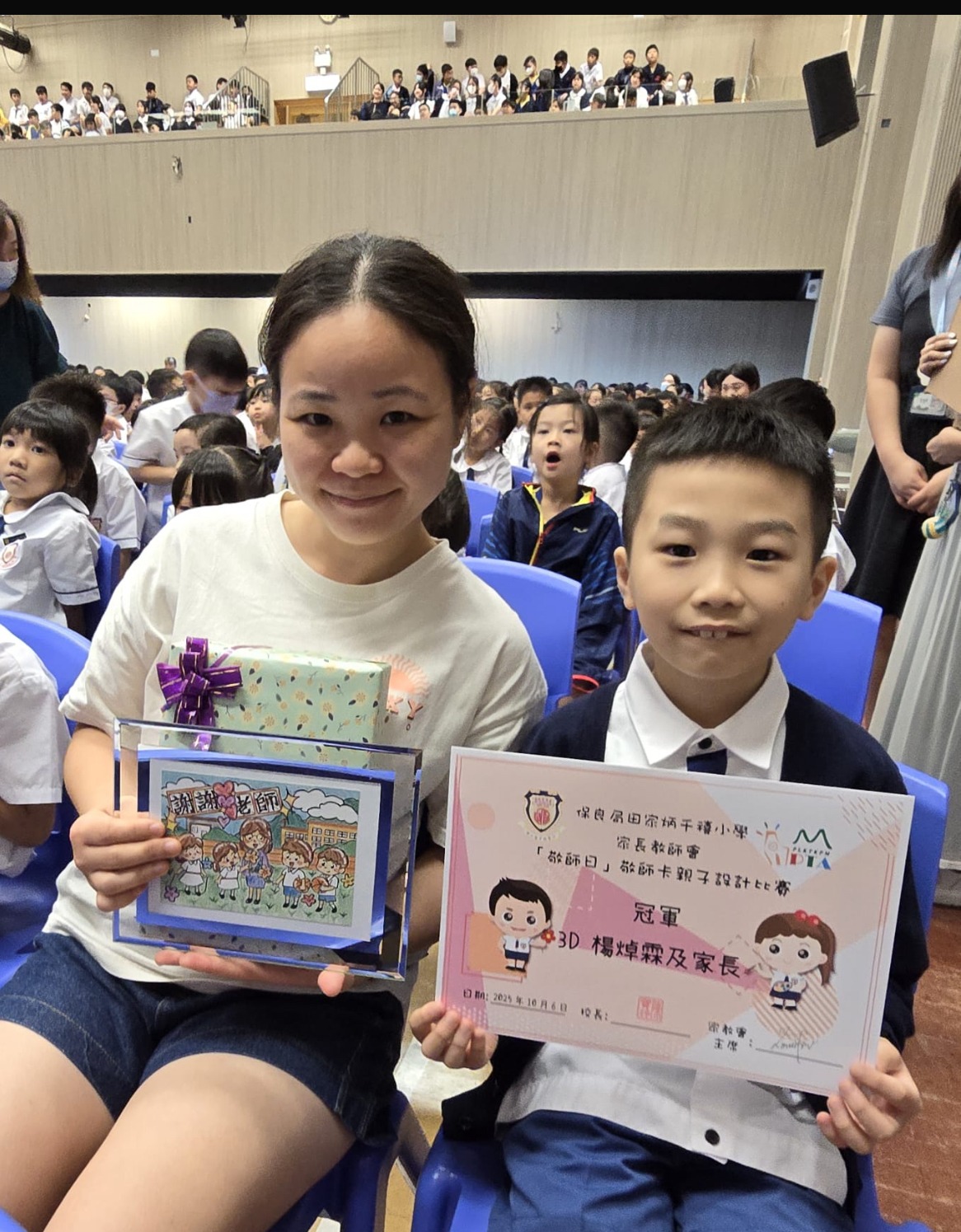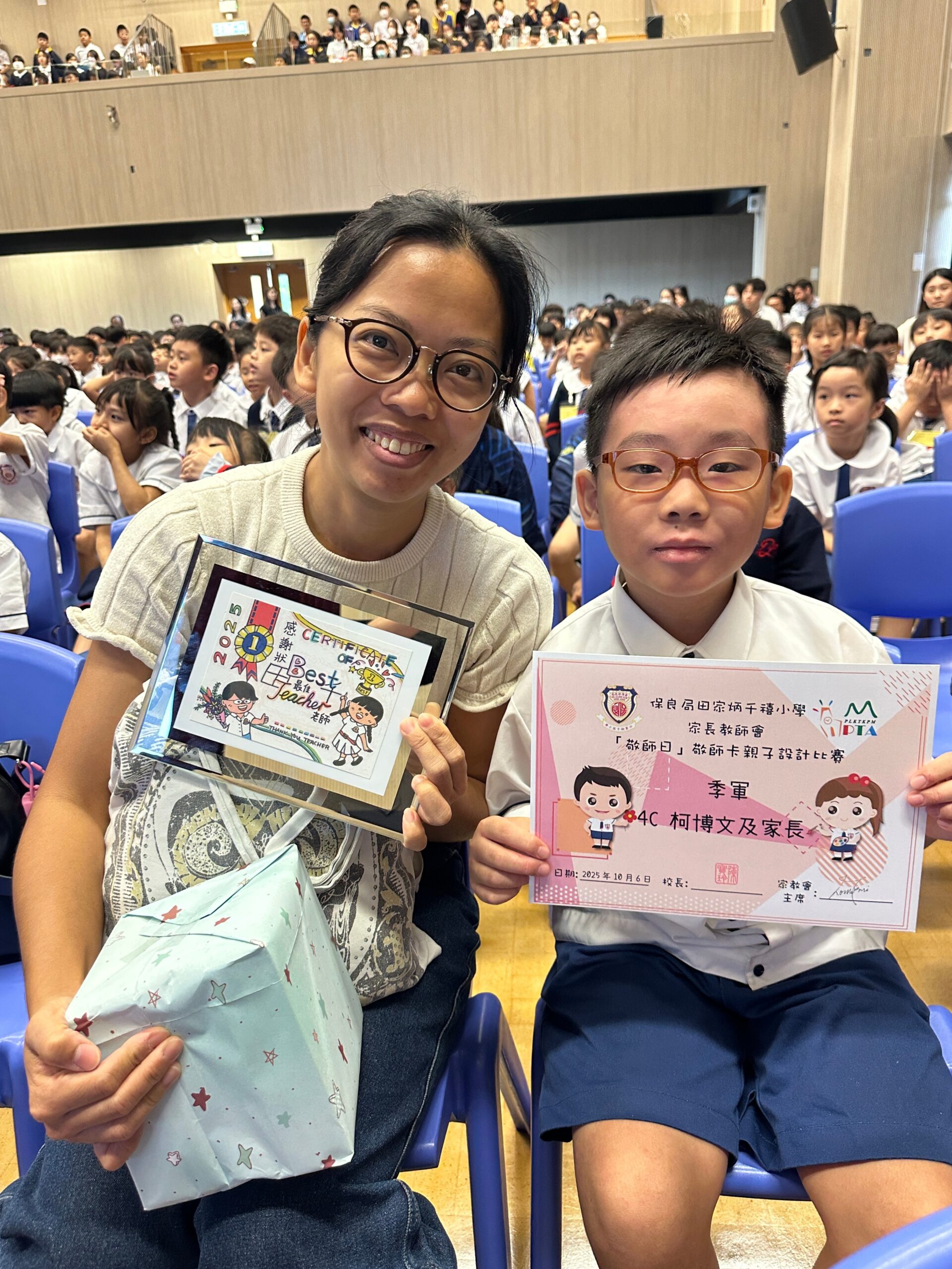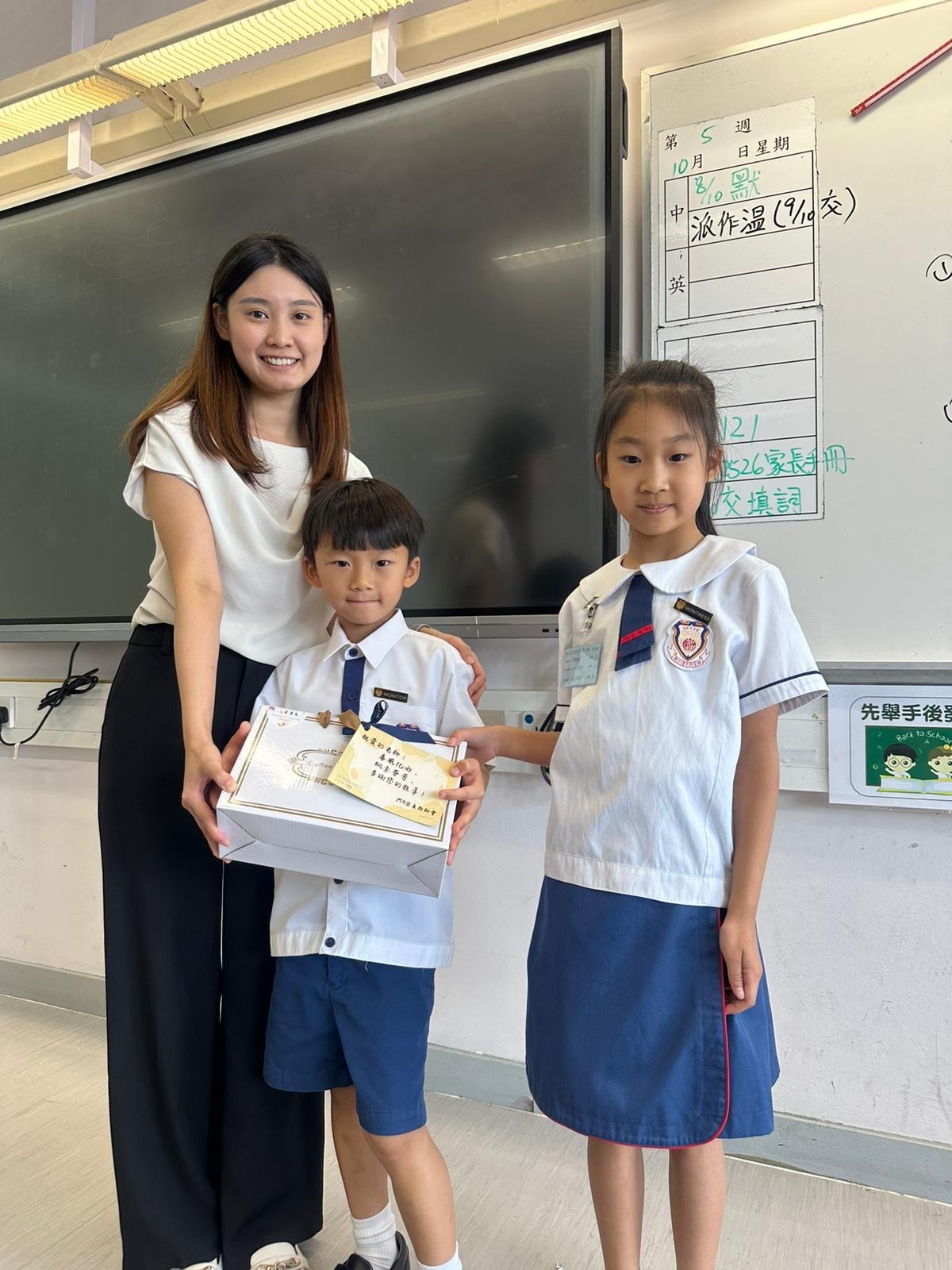 簡介: 「弘師道、頌師恩」——為了弘揚尊師重道的精神,本會舉辦了一系列敬師活動。學校與家教會早前合辦了「敬師日敬師卡親子設計比賽」,感謝各位同學及家長積極參與。此次比賽的作品非常優秀,學校將部分得獎作品製作成敬師卡,並由學生送給老師,以表達敬意和感謝。此外,家教會委員及學生代表也向校長及老師致上禮物與祝福,展現對師長的敬意與感謝之情。